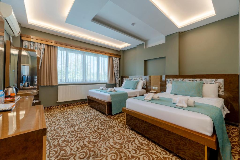 At Sapanca Aqua Wellness SPA Hotel & Aqua Park, guests can choose from a range of thoughtfully designed room types that cater to every traveler's needs. The Standard Room, a cozy 24 square meters, offers a tranquil retreat for solo travelers or couples seeking a peaceful escape. For those desiring a bit more space, the Junior Room at 32 square meters provides a comfortable atmosphere, perfect for unwinding after a day of exploration. Families will appreciate the expansive Family Room with Garden View, which spans 65 square meters and offers a serene backdrop for cherished moments together.